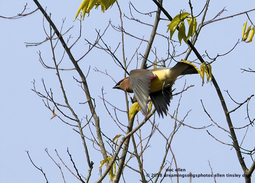 They love cedar berries and you can see the red “wax” at the inside lower edge of this one’s wing.