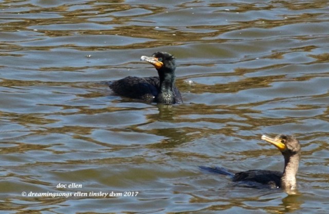 The tiny fluffs of feathers on each side of this double-crested cormorant’s head are his “crests”.