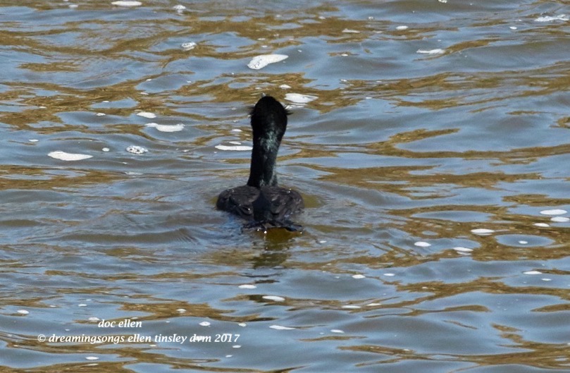 The tiny fluffs of feathers on each side of this double-crested cormorant’s head are his “crests”.