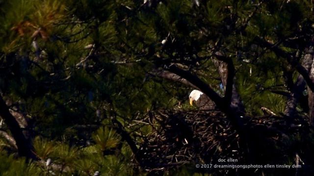 That is mom Kate on the lower branch and dad Petruchio on the upper one of a tall pine at the edge of their cove.