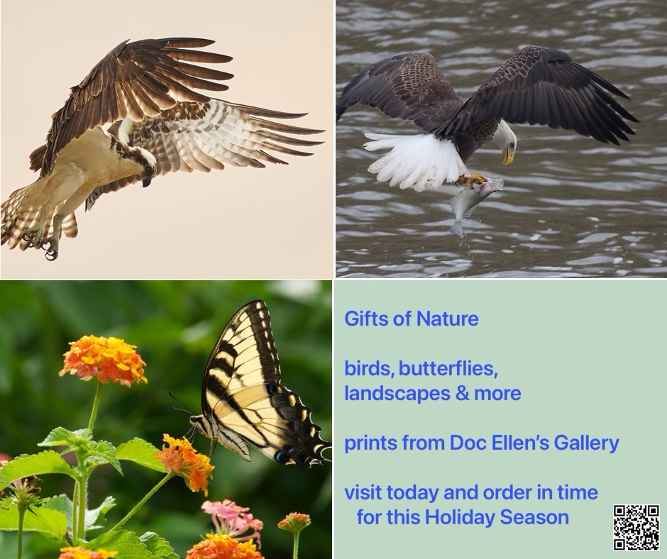 Jordan Lake Dam. This great blue heron deftly moved the fish he had speared, flipped it into the air and caught it again so that he could swallow it head first. Note the two long white-tipped black plumes on the heron’s head … these plumes elongate during breeding season … this adult is ready to find a mate.