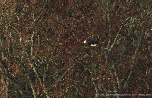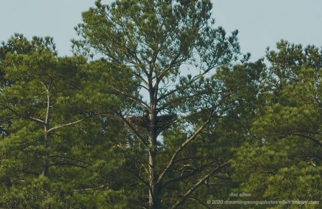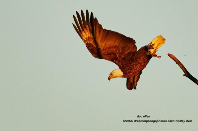 I found Dad Hershey in the nest, enjoying the golden hour of sunrise. Eventually Mom Godiva flew in and landed on one of their sentinel trees. I didn’t see the chick(s); they have to get a wee bit older and bigger before they will be visible. It sure was great to be able to get out and about on the lake again after all the high water!