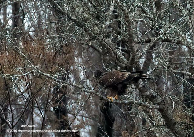 A 3-year-old bald eagle quickly saw the opportunity to try to steal a fish.