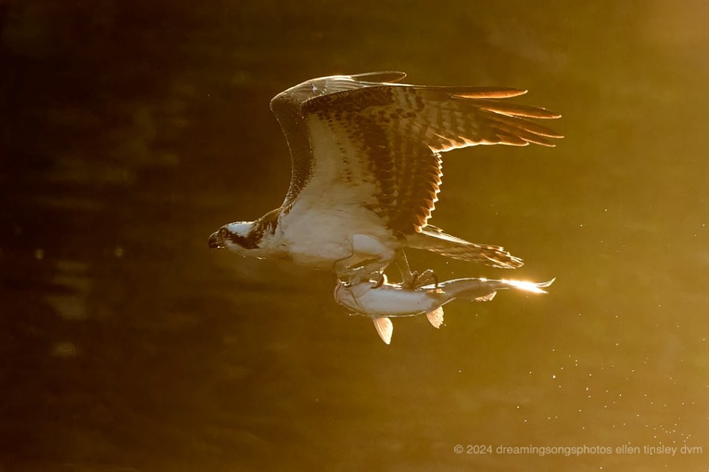 This is the hollering juvenile female osprey that was in my post a while ago. I just got back to scanning that day’s work. We can all see why she was screaming. The chunk of fish tightly grasped in her right talons was what she was protecting! BTW average wingspan of an osprey is 5-6ft.