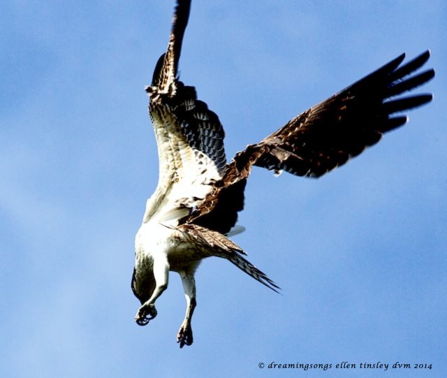 That is Cadet upstairs and a young turkey vulture downstairs; they were both born this year. As often happens, I was putting up my camera when I heard Cadet call and turned to see him buzz the vulture! I missed the buzz-by dive with my camera, but did get this fly-by.