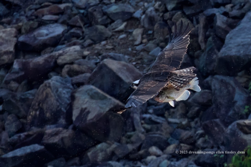 Jordan Lake Dam. Have you ever seen an OSPREY go big wave SURFING? This male osprey came plunging out of the sky and into the river right in front of the thundering waves of the riprap. I don’t know whose heart was beating faster: his or mine… Hope you have a moment to watch the challenge to catch a fish!
