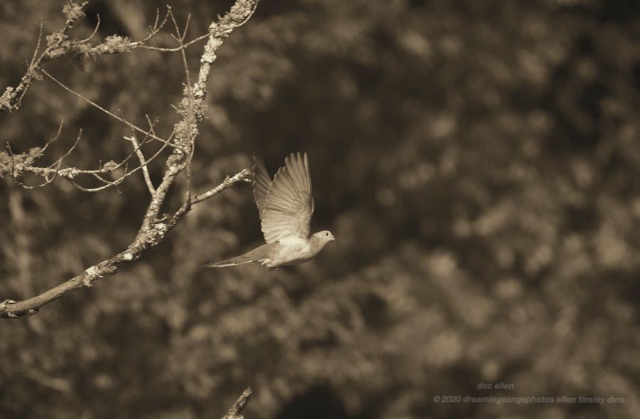 Jordan Lake, Haw River: Doc Ellen’s Evening Note 09-01-2020. Gently flies the mourning dove, into evening skies. Follow her with your thoughts drifting towards sleep, deep and healing. Peace and grace, Doc Ellen.