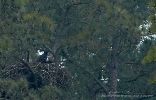 The parent bald eagles, Petruchio and Kate at First Nest, were busy this morning. At one point the parents had a slight disagreement about who should be sitting on the eggs. It was interesting to see their reactions to each other.