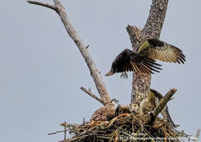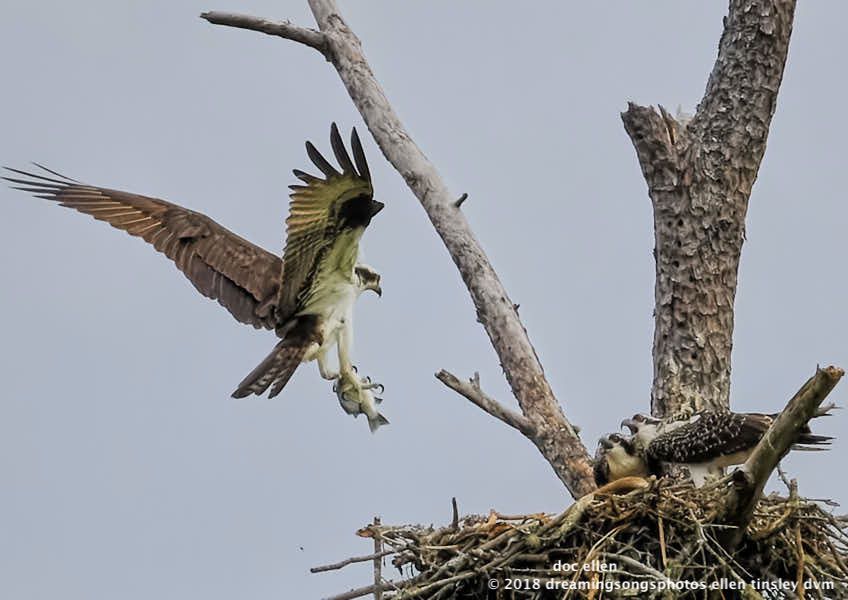 Oops! Broken Feather is so aggressive she at first grabs Dad’s toe instead of the fish.