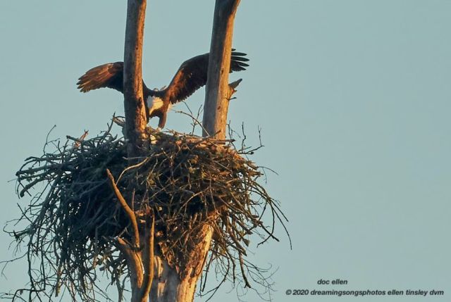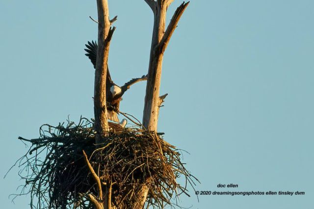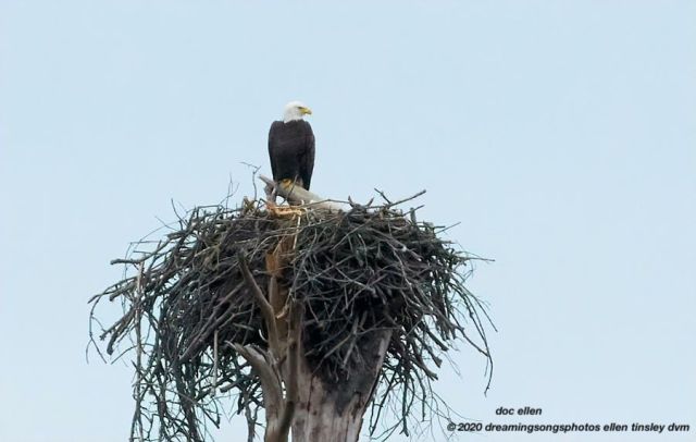 The 12-year-old heart of me wants to say that Mom Ranger will return. The veterinarian mind of me says she will not. There were some very unusual happenings at Ranger Nest today. Both a 3-year-old bald eagle and a 4-year-old bald eagle actually visited the nest and stayed within the nest for a while. Dad Ranger chased the 3-year-old off. Then Dad Ranger went to a favorite nearby perch tree and was soon joined there by the 4-year-old bald eagle, who is a female. Dad Ranger allowed the 4-year-old to perch with him. Then Ranger Dad went to the nest, followed by the 4 year-old eagle. Both eagles very intently studied the inside of the nest. I believe that they were looking at Mom Ranger who had passed away within the nest. I have no facts, just observations, to support my assumptions, but I think they are probably close to the truth. We will probably never know what happened to Ranger Mom. I do wonder if there will develop a relationship between Ranger Dad and the 4-year-old female bald eagle who will be mature enough this coming fall to be looking for a mate. I will continue to watch Ranger Cove and let you if anything develops. I miss Ranger Mom, a lot.