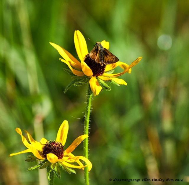 The three brassy little skipper butterflies were sharing a button bush blossom.